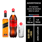 2 Johnnie Walker Black Label 750 ml. + 2 Coca-Cola Zero Azúcar 1,5 lt. + 4 vasos 2 Johnnie Walker Black Label 750 ml. + 2 Coca-Cola Zero Azúcar 1,5 lt. + 4 vasos