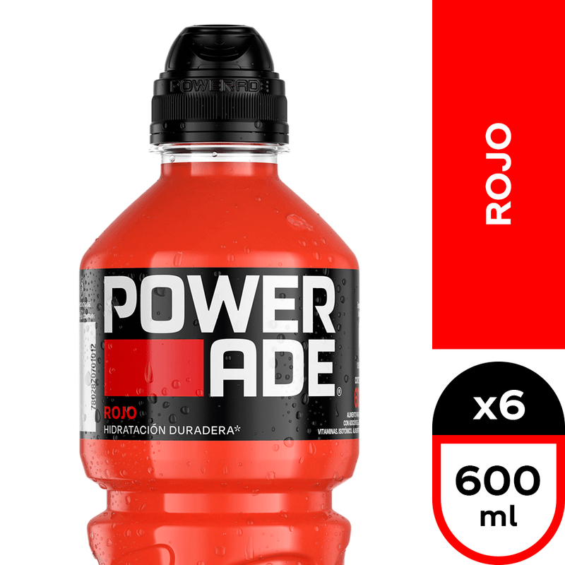 Energízate e hidrátate con esta bebida Isotónica Powerade Rojo en Botella de 600 ml. Pack 6 un.