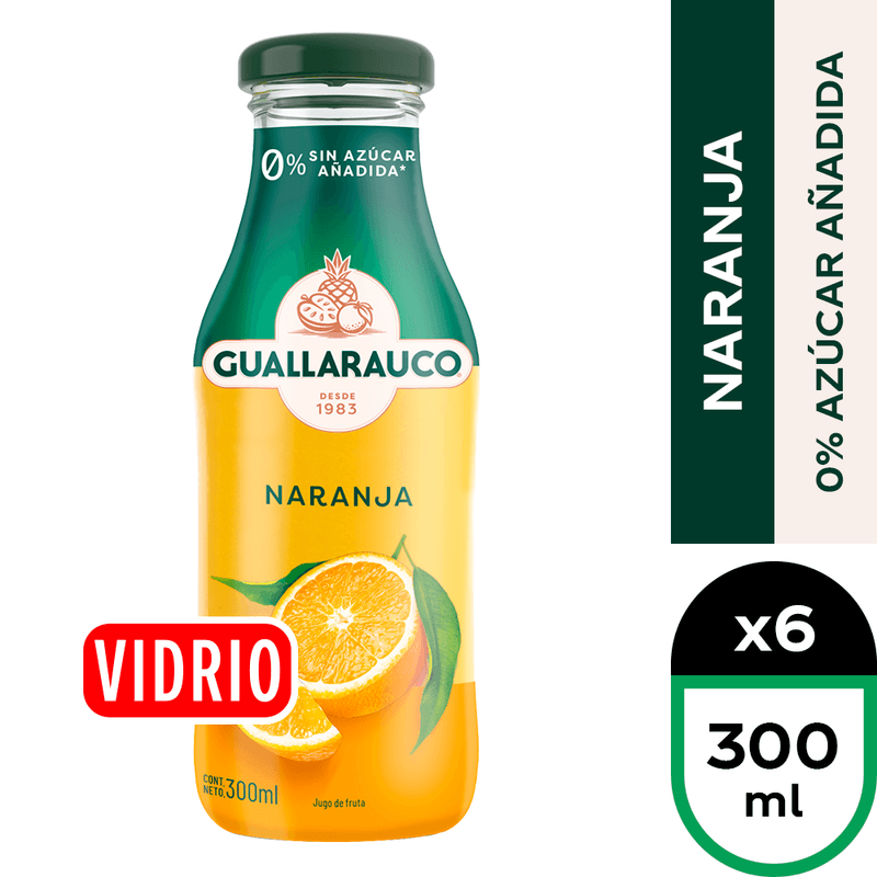 Mantente hidratado con agua de fruta Guallarauco Naranja en Pack 6 un. en Botella Individual de 300 ml.
