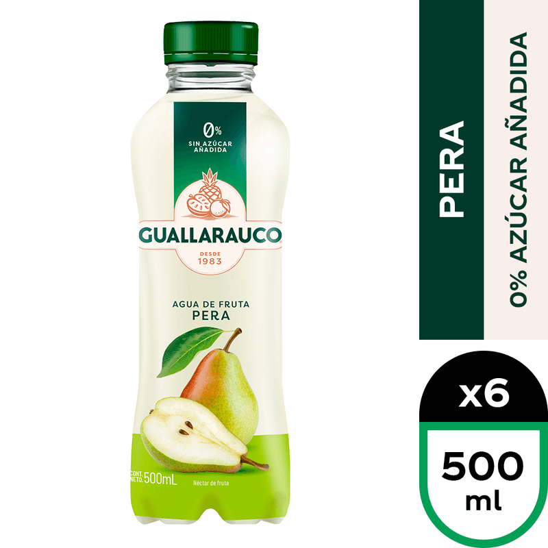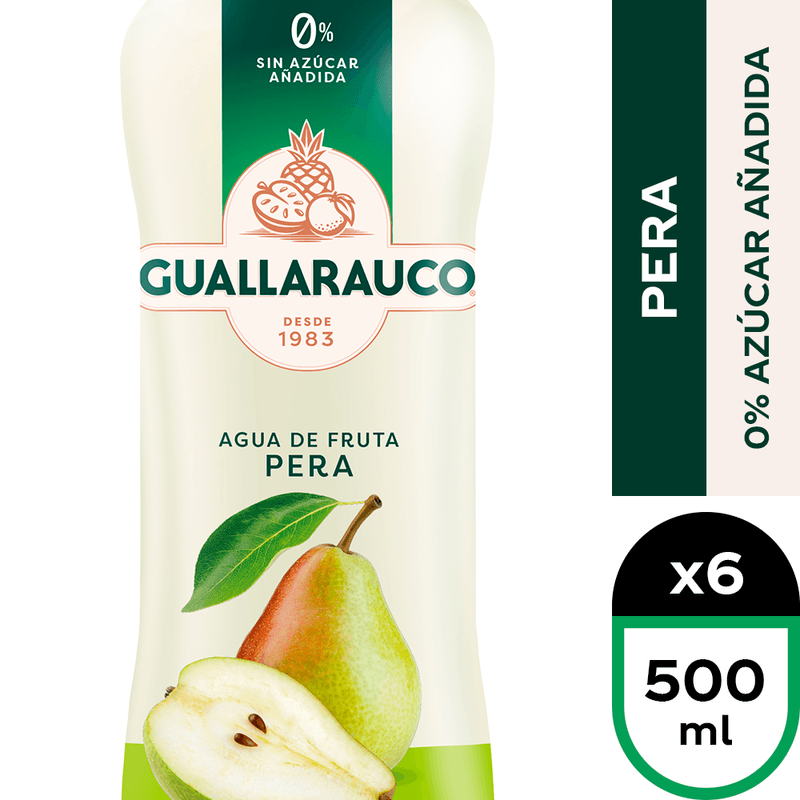 Mantente hidratado con agua de fruta Guallarauco Pera en Pack 6 un. en Botella de 500 ml.