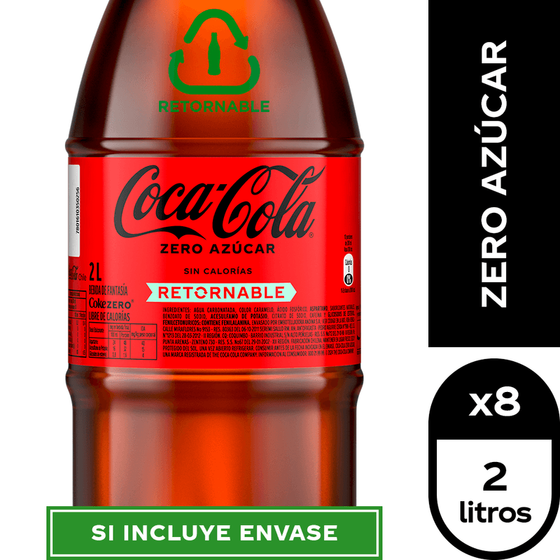 RetornablesSSD sin azúcarStarter Kit Coca-Cola Zero Azúcar Retornable 8 x 2,0 lt. (Incluye jaba y envases)