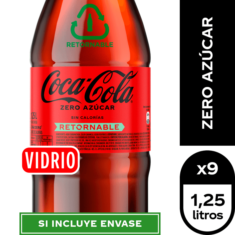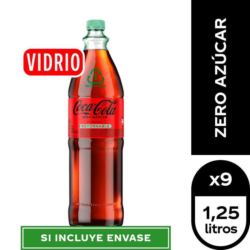 BebidasSin AzúcarStarter Kit Coca-Cola Zero Azúcar Retornable 9 x 1,25 lt. (Incluye jaba y envases)