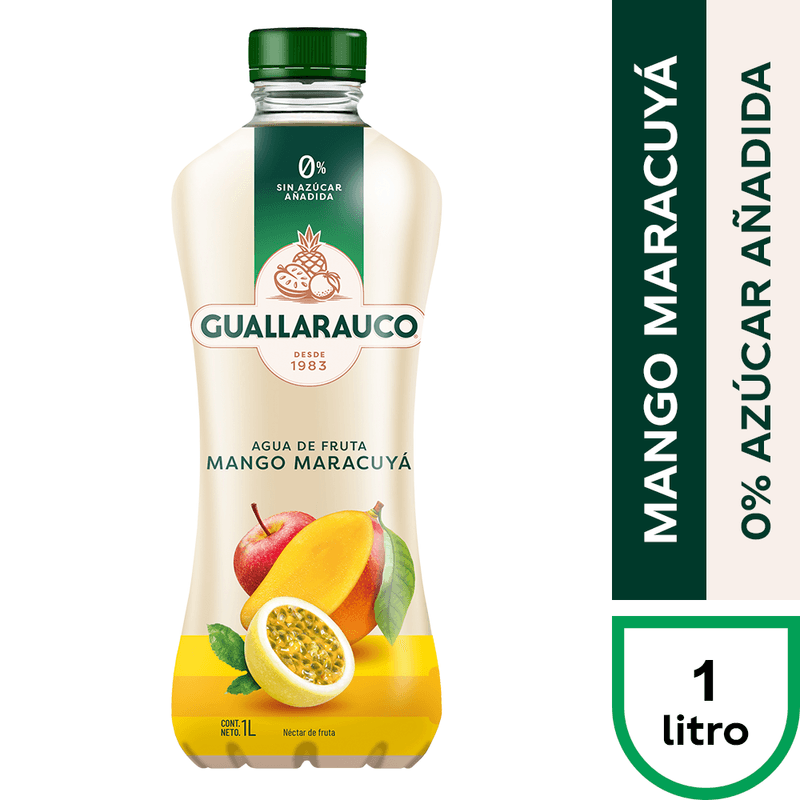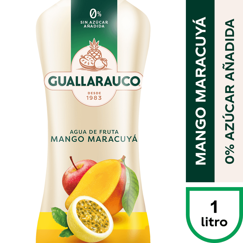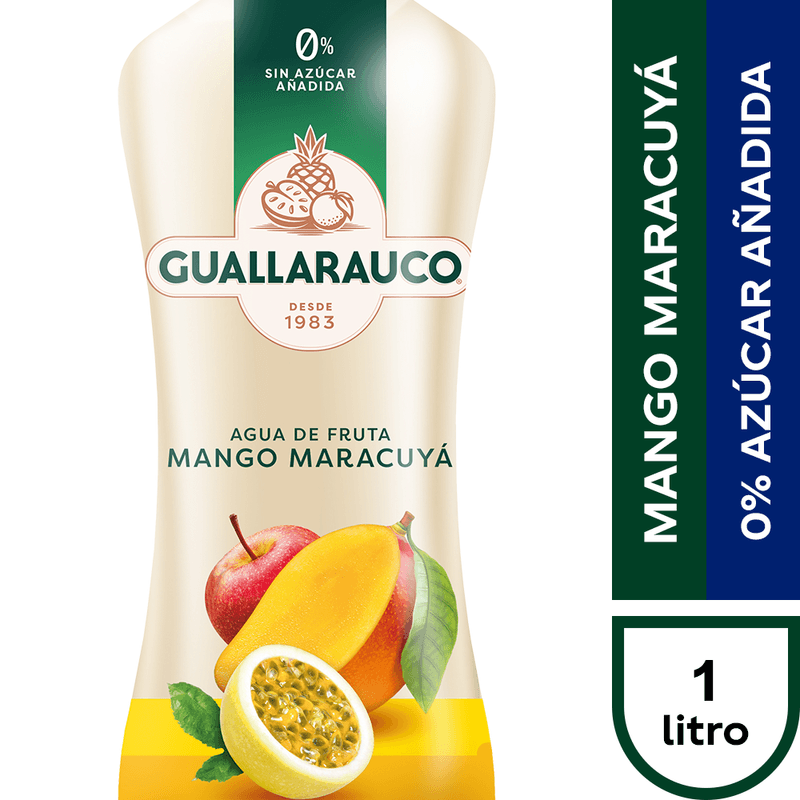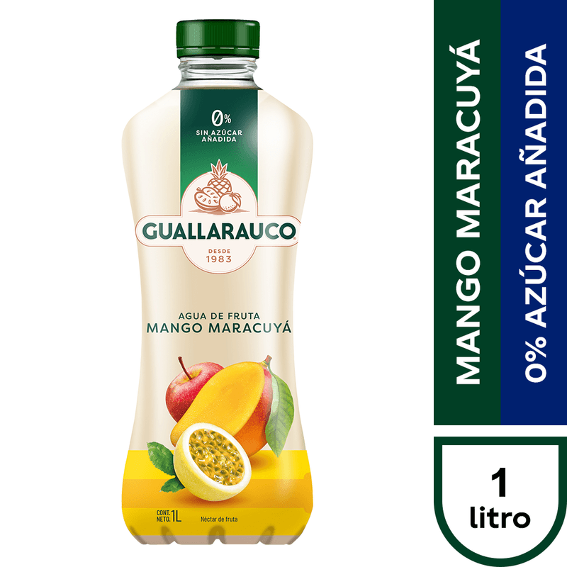 Mantente hidratado con Agua guallarauco Mango Maracuyá en formato de botella de 1 lt.