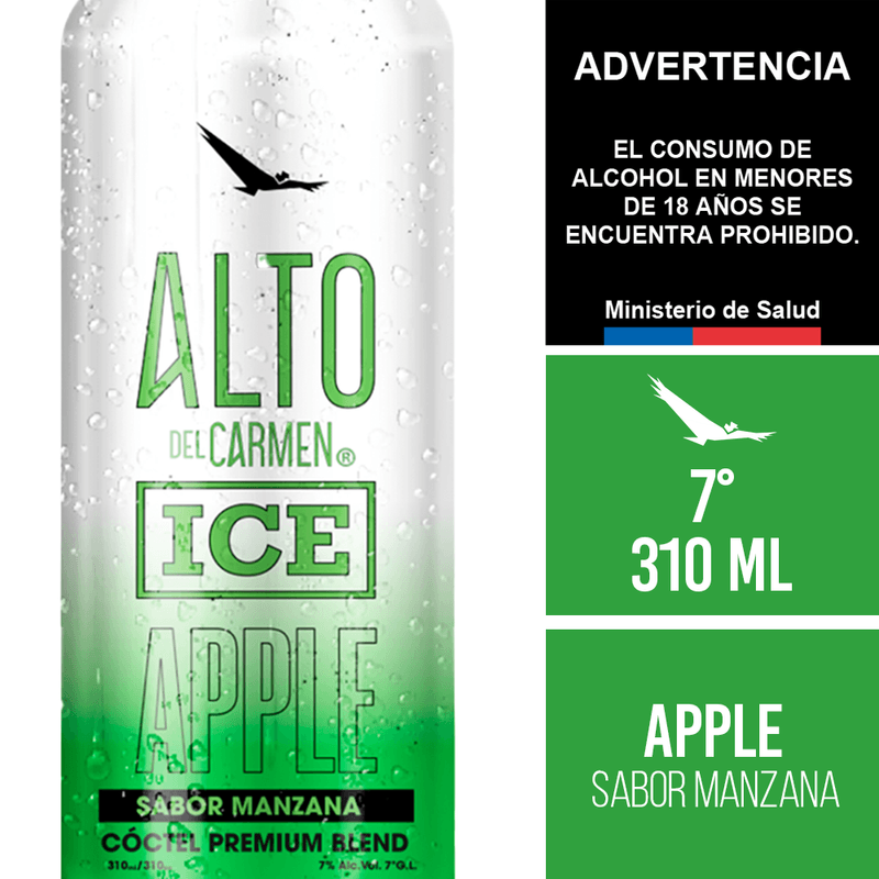 Alto del Carmen Ice Manzana es un cóctel brillante y con finas burbujas; en nariz destaca su intensidad frutal con notas frescas de manzana verde. En boca es refrescante, equilibrado y con personalidad, de persistencia media y un final agradable.