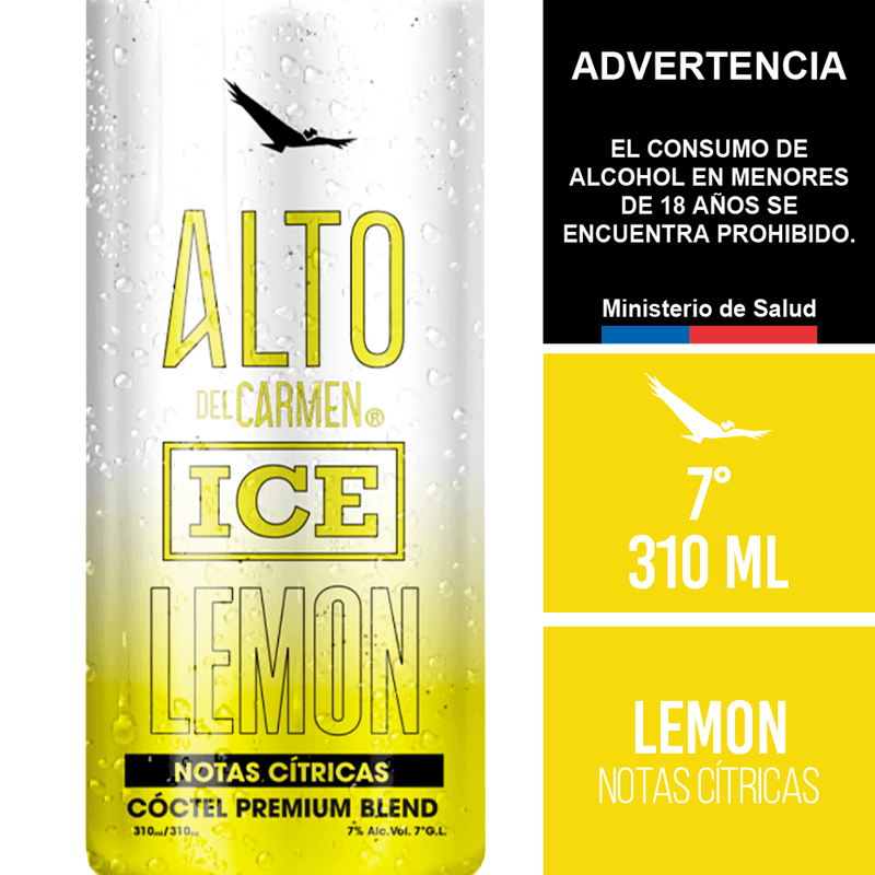 Alto del Carmen Ice Limón es un cóctel que destaca por su aroma fresco y cítrico, enriquecido con delicadas notas de pepino. En boca se presenta ligero, refrescante y armónico entre dulzor y acidez. Su perfil cítrico se complementa con un matiz herbal del pepino, ofreciendo una persistencia prolongada y agradable.