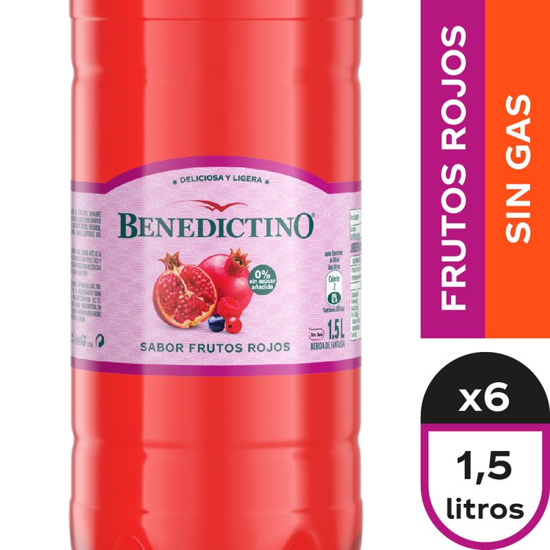 Mantente hidratado con agua Benedictino sabor frutos rojos en Botella familiar de 1,5 lt en pack 6 unidades.