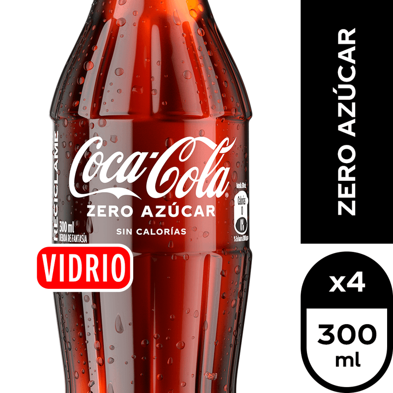 Disfruta el sabor de tu bebida Coca-Cola Sin Azúcar en pack de 4 unidades en Botella Vidrio de 300 ml.