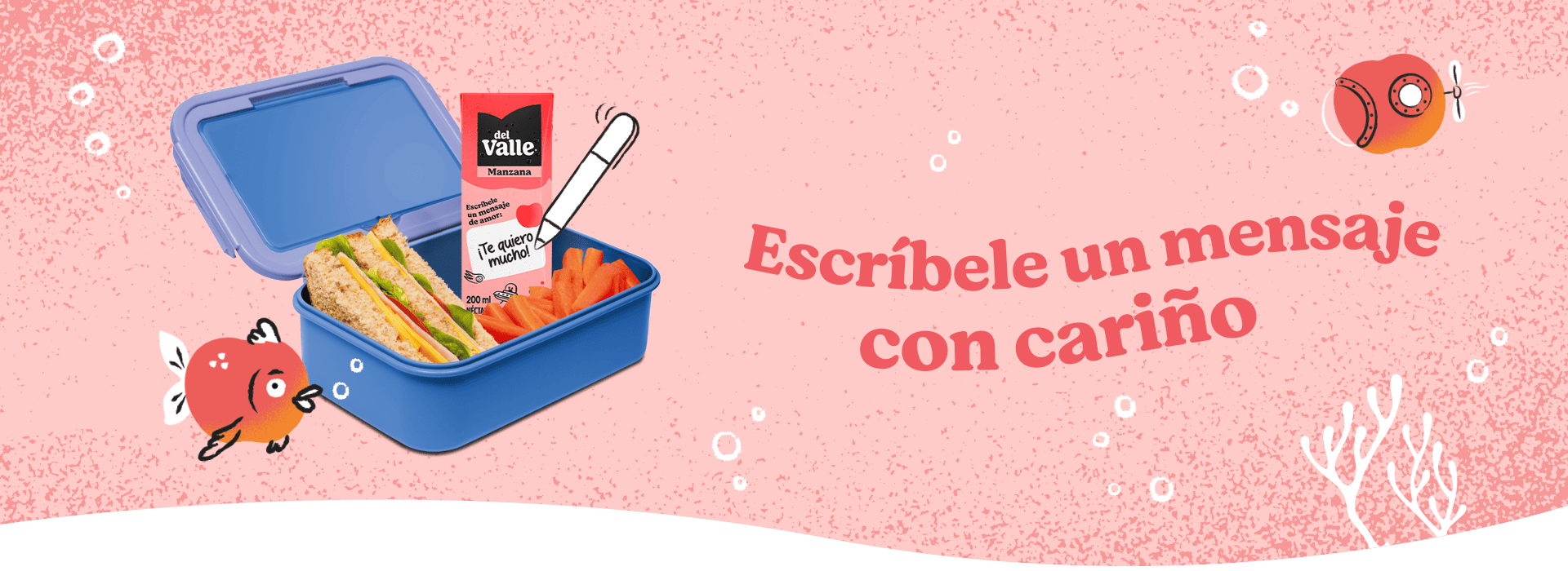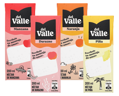 Los nuevos envases de Jugos Del Valle incluyen un espacio de diseño especial (similar a una nota o burbuja de diálogo) en el frente, pensado específicamente para que tu mensaje destaque y sea lo primero que vean al sacar su colación.