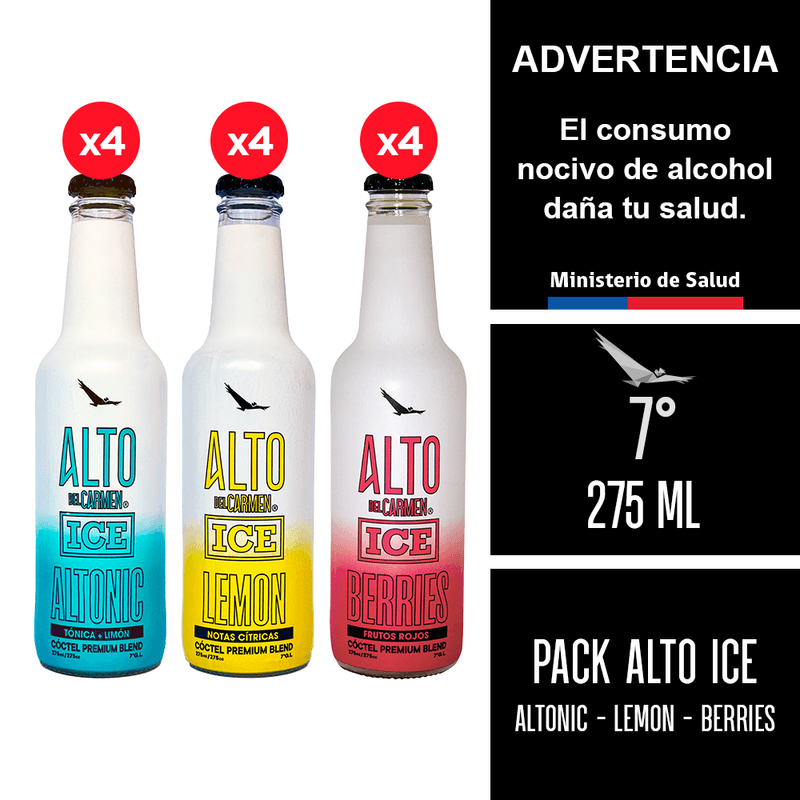 Disfruta el mix perfecto de Alto del Carmen Ice: tónica, limón y frutos rojos en una experiencia refrescante y llena de sabor.