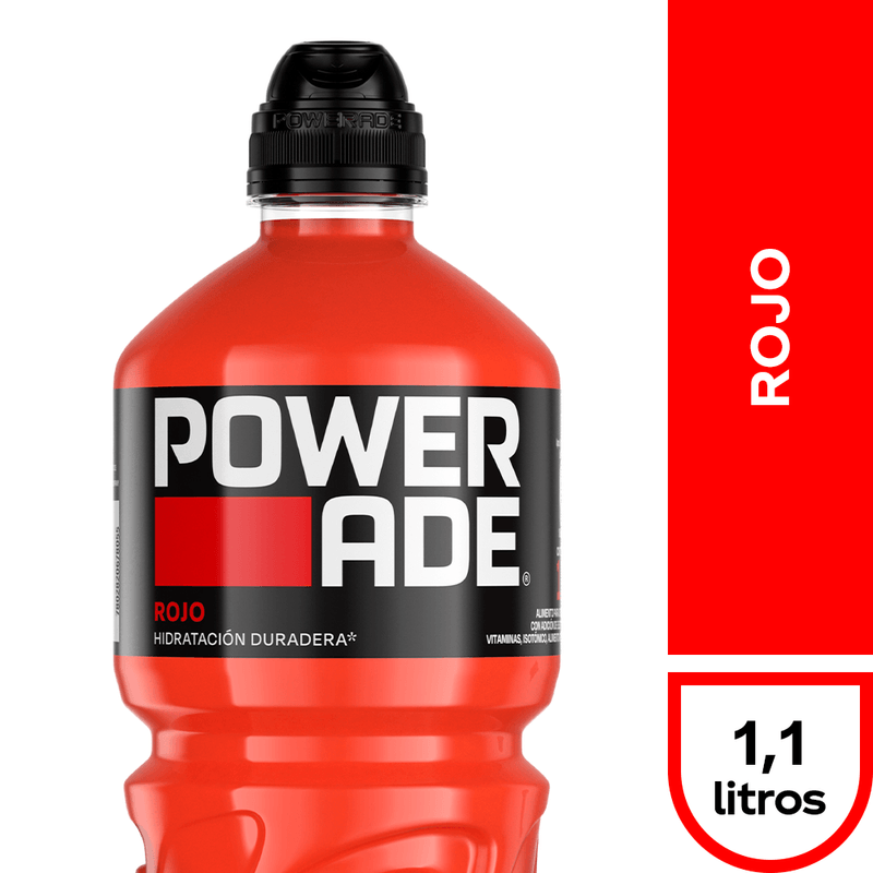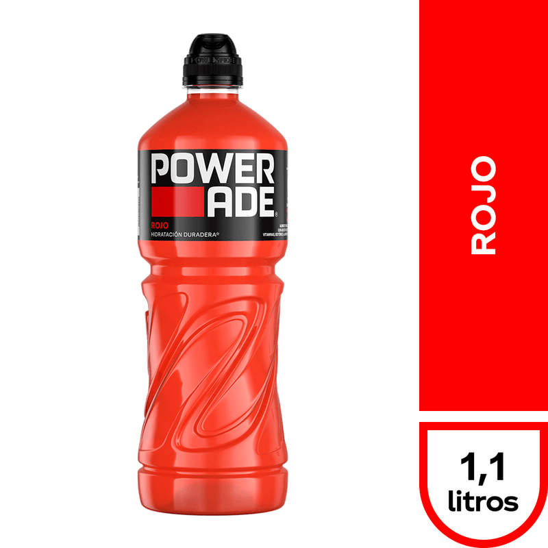 Energízate e hidrátate con esta bebida Isotónica Powerade Rojo en Botella de 1,1 lt.