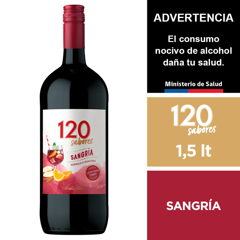 Una equilibrada mezcla de vino 120 y sabores frutales que dan vida a esta sangría de 1,5 lt.