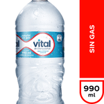 Vital Sin Gas 990 ml: Una botella conveniente para disfrutar de la refrescante Vital Sin Gas en cualquier momento, con el tamaño perfecto para saciar tu sed y refrescarte.